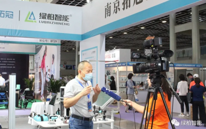 02 領導巡館和媒體報道 開幕式結束后,省政府副省長趙世勇等一行領導首先來到綠柏展位蒞臨指導。綠柏公司總經理田開江先生為大家介紹了綠柏智能康復產品的特色功能和在養老方面的應用情況。趙副省長親自體驗了智能OT這款產品,并表示把人工智能和傳統康復相結合是非常創新的典范,也是康復養老未來發展的方向。 展會上,江蘇衛視媒體對田總進行了采訪和報道。采訪中,田總對江蘇衛視記者提出的問題進行了解答,并重點介紹了綠柏公司在康復養老領域的服務理念。田總表示,綠柏會緊跟高質量養老服務的發展理念,未來持續專注于智能養老產品的研發和制造,助力養老產業的發展。 此外,在本次老博會期間,組委會特別在展會現場設置直播間。組委會特邀請田總進行專訪,就綠柏2020年隆重推出的新品:步行反饋自適應康復系統這款產品的功能特色和在康復養老領域的應用進行深入交流。