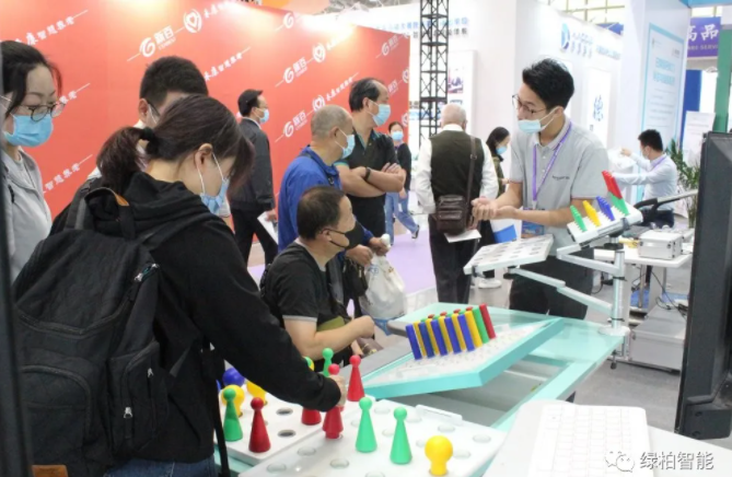 03 綠柏展位風采 作為一家以研發、生產和銷售智能康復設備為核心,在康復養老領域內多元化發展的企業,江蘇綠柏參展的多款智能康復設備吸引了眾多參展觀眾的駐足參觀和體驗。尤其是綠柏2020年新品步行反饋自適應康復系統產品得到了眾多參展商的關注,他們對這款步行機器人表現了極大的興趣,很多參展商現場進行了詳細咨詢并表達出未來合作意向。